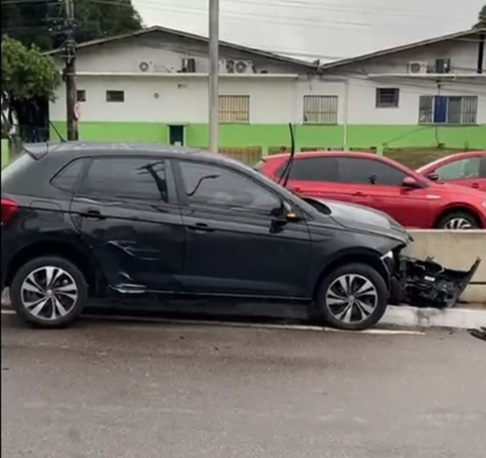 Um acidente inusitado chamou a atenção de quem passava pela avenida Boulevard Álvaro Maia, na zona Centro-Sul de Manaus, na manhã desta sexta-feira (11). Um Volkswagen Polo preto, de placa QZU-6E07, colidiu contra a estrutura de um viaduto por volta das primeiras horas do dia.