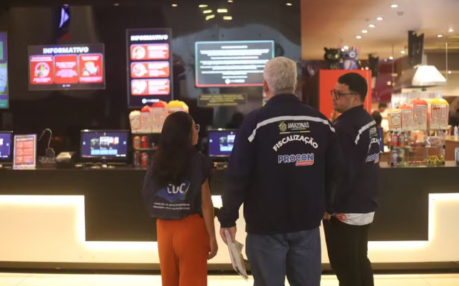 Um cinema localizado em um shopping da Zona Norte de Manaus foi notificado pelo Procon-AM na terça-feira (15) após consumidores denunciarem ter sido impedidos de entrar com alimentos comprados fora do estabelecimento. Durante a fiscalização, agentes encontraram placas informando que só seria permitida a entrada de pipoca e refrigerante nas salas de exibição.