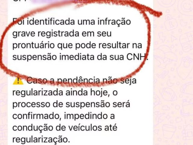 O Departamento Estadual de Trânsito do Amazonas (Detran-AM) emitiu, nesta quinta-feira (13), um alerta sobre um novo golpe aplicado por criminosos pelo WhatsApp. As mensagens falsas simulam notificações de infrações graves e até supostos processos de suspensão da Carteira Nacional de Habilitação (CNH), sempre acompanhadas de links que direcionam a pagamentos indevidos via Pix.