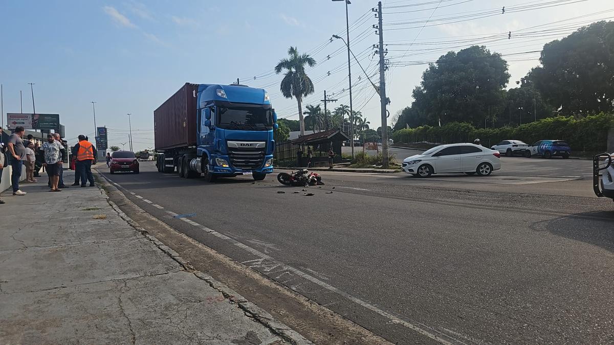 Um grave acidente de trânsito registrado na manhã desta sexta-feira (12) resultou na morte do motociclista Kleyn de Souza, após uma colisão frontal contra um caminhão na avenida Rodrigo Otávio, no bairro Distrito Industrial, zona sul de Manaus.